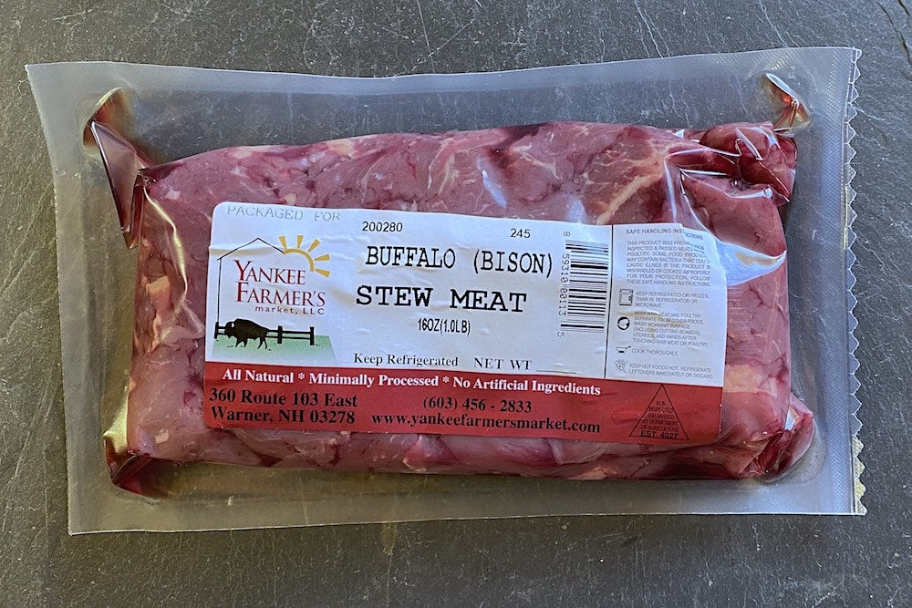 Try these convenient pre-cut chunks of lean pasture-raised Buffalo Stew Meat. Locally grown and pastured on our NH farm to produce heart-healthy meats that taste as good as they look.
