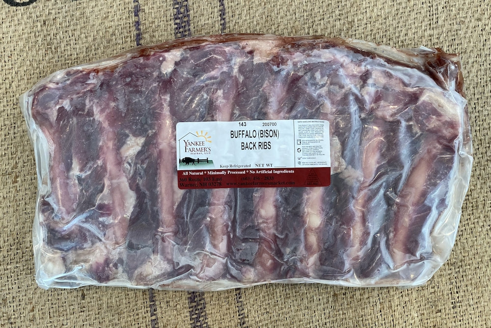 Pasture-raised Buffalo Back Ribs. You won't be asking, "Where's the Buffalo?" with these ribs. This is a full rack of finger-licking goodness. And it's as healthy as it is tasty.
