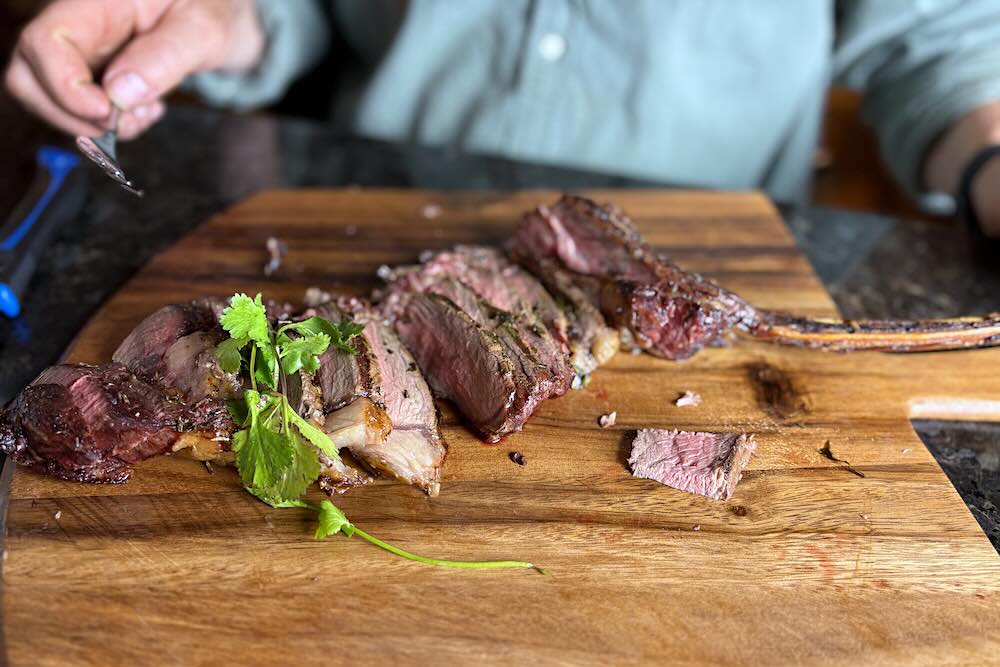 The tomahawk steak gets its name from the Native American tomahawk axe. Its long, frenched rib bone resembles the handle. While the cut is essentially a bone-in ribeye, its dramatic presentation has made it popular for centuries. It is often seen as a symbol of abundance, celebration, and feasting.