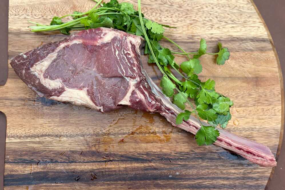 Hand-cut from pasture-raised bison, this massive steak features a long, frenched rib bone for dramatic presentation. It’s the ultimate centerpiece for grillmasters, food lovers, and anyone who values high-quality, sustainable meat.